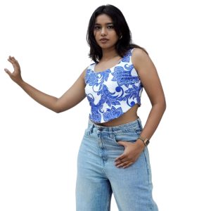 Blue Rising Floral Vector Print Corset – Zip Up Structured Fit