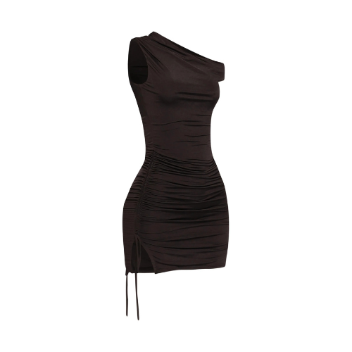 Built for body language. The Crush Hour Asymmetrical Ruched Mini Dress serves bold energy with an angled off-shoulder neckline, curve-hugging silhouette, and side drawstring ruching you can cinch to your vibe. Designed in a sleek stretch fabric that sculpts your figure just right, this flirty mini makes it easy to go from date nights to dance floors without missing a beat. Minimal effort, major effect.