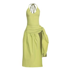 Coastal Flirt Halter Midi Dress with Tie Waist Detail