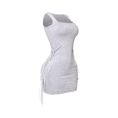 The Fringe Check Acid Wash Mini Dress is made to turn heads—period. With its square neckline, curve-hugging stretch, and flirty fringe running down both sides, this mini brings festival energy and It-girl confidence. The acid wash finish gives it that worn-in, edgy vibe that looks equally hot with boots or heels. Add hoops and a messy bun for that model-off-duty moment.
